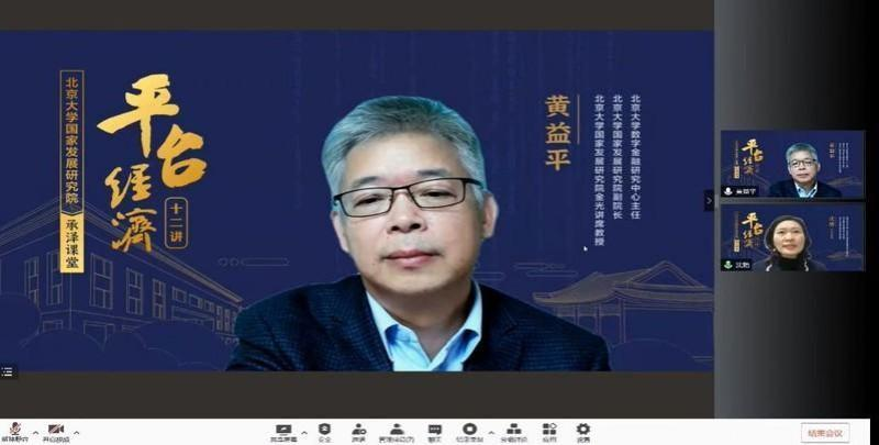 2021年11月18日晚,北京大学的黄益平教授带来了线上专题演讲“北大国发院承泽课堂·平台经济十二讲第一讲——平台经济的机会与挑战”,同学们在纪晶华教授的组织下在线观看了演讲。