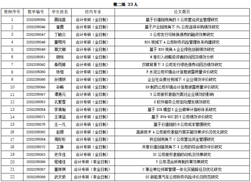 需参加答辩学生共44人。其中会计专硕(全日制)41人、会计专硕(非全日制)3人。