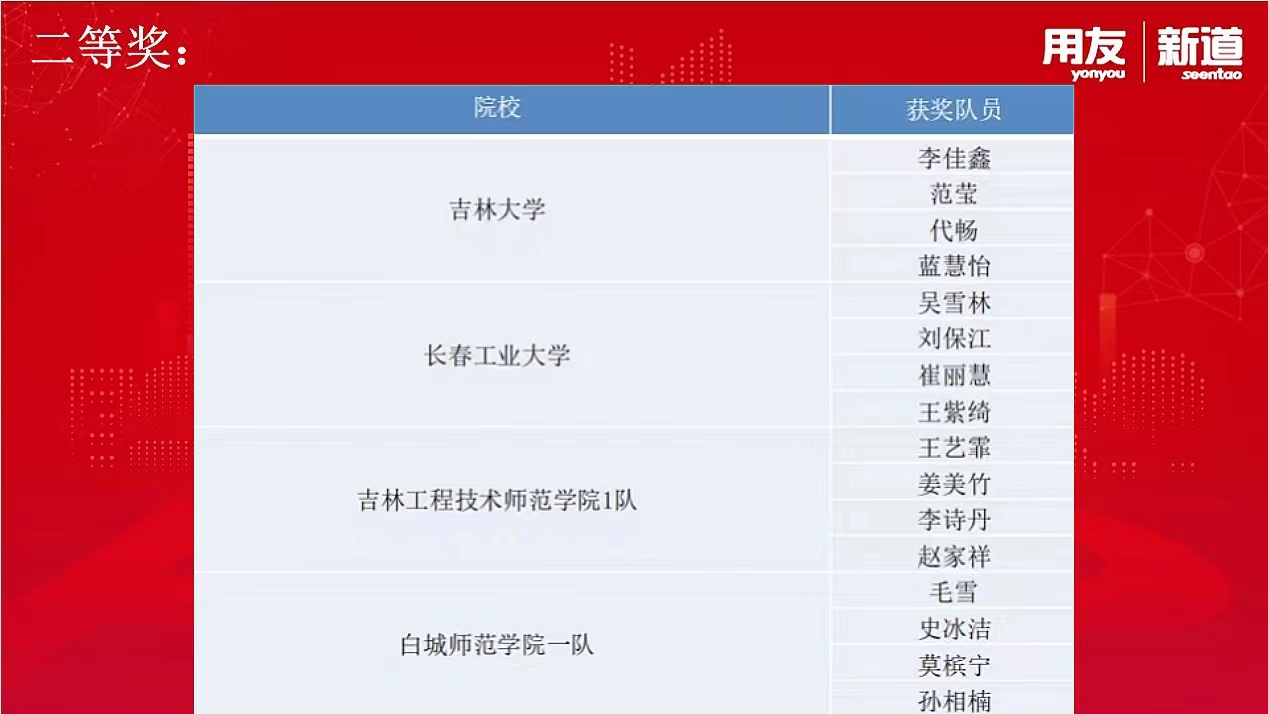 2022年7月12日,第三届“新道数智人才杯”全国高等院校数智人力大赛(人力资源大数据赛项)吉林赛区竞赛圆满收官。经过激烈而紧张的10天竞赛比拼,由工商管理系王亚君老师和王明昊老师指导的两个代表队分别获得了大赛一等奖和二等奖的好成绩。其中韩耀旭、熊柄程、邱锦涵、宋子涵代表队获得省赛一等奖,吴雪林、刘保江、崔丽慧、王紫绮代表队获得省赛二等奖,永利官方网站代表队成功晋级全国总决赛。