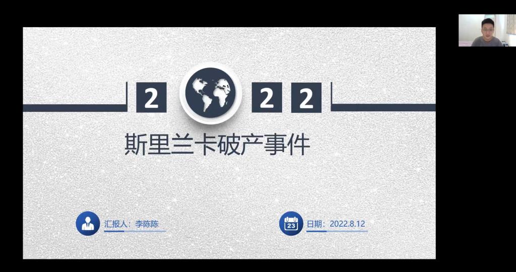 讲座中,李陈陈以“斯里兰卡”破产事件为案例,梳理了该国家自2009年以来发生的重要事件,并从区域经纪韧性等宏观角度分析了斯里兰卡破产的原因,进而阐述该事件对世界及对我国的启示,最后针对该国家现状及破产的原因,提出针对性的建议。