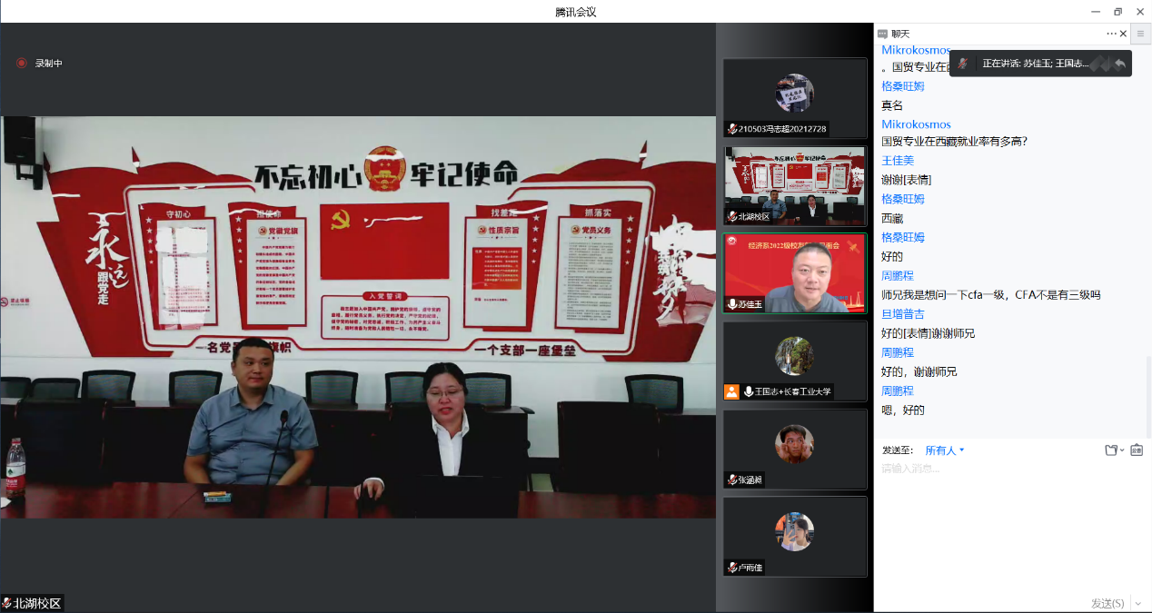 学院网讯(通讯员 冯志超 高雨聪 崔月慧)2022年9月9日下午15:30,我院经济系利用腾讯会议于线上召开了2022级校友新生见面会。本次会议邀请到了经济系优秀毕业生——2001级国际经济与贸易专业学生,现天安财产保险股份有限公司北京分公司副总经理苏佳玉校友。出席本次会议的有402永利集团副院长王涛教授、经济系主任张璇老师、经济系教师代表王国志老师和崔月慧老师,以及经济系2022级全体新生。
