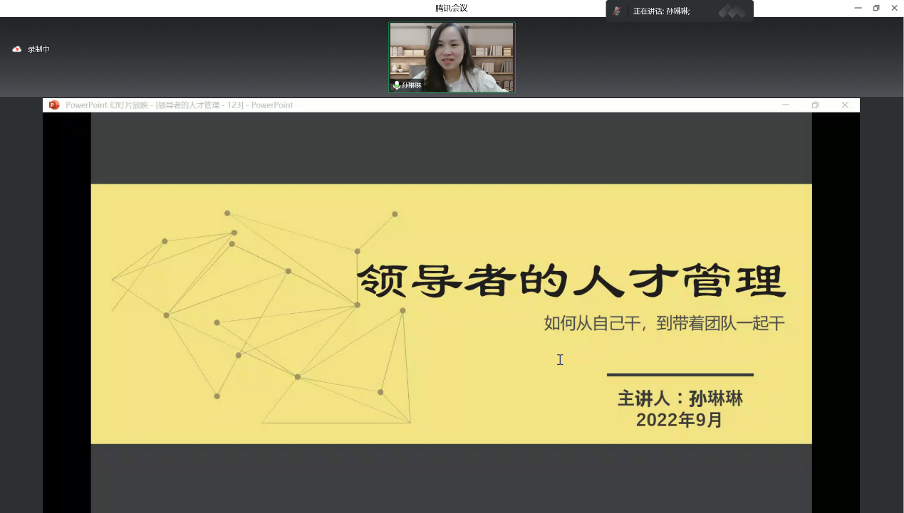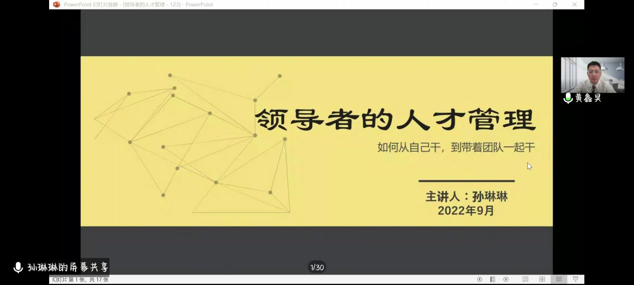 学院网讯(通讯员 王静)凝聚校友力量、传承经管文化、学习榜样精神、助力学子成才,2022年9月14日18:30,校友论坛2022年第9期在腾讯会议端举行,402永利集团2002级校友孙琳琳作了题为“领导者的管理人才——如何从自己干,到带着团队一起干”的报告。学院部分教师、本科以及研究生同学参加了论坛。论坛由副院长黄鑫昊主持。