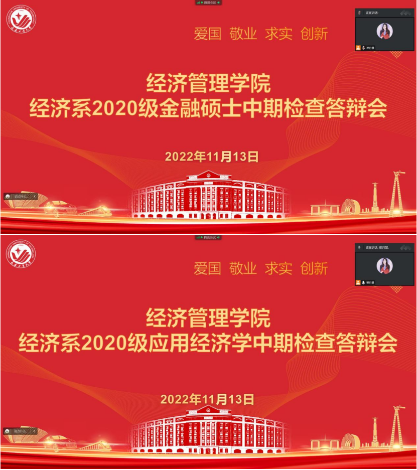 此次答辩会共11位学生参加答辩,经过答辩组及学们的共同努力,经济系2020级金融硕士与应用经济学硕士学位论文中期检查答辩工作圆满完成,为提高学位论文质量打下了坚实基础。