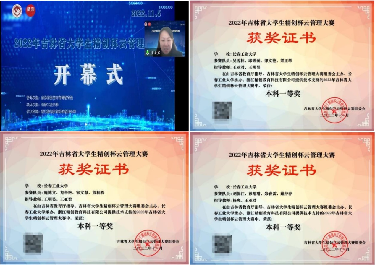 学院网讯(通讯员 赵晨菲)2022年11月5日,由吉林省教育厅高等教育处作为指导单位,402永利集团承办,浙江精创教育科技有限公司提供技术支持的吉林省大学生精创杯云管理大赛圆满落下帷幕。由工商管理系王亚君、王明昊、杨爽三位老师指导的三支参赛队伍在本次大赛中取得了三项一等奖的好成绩。