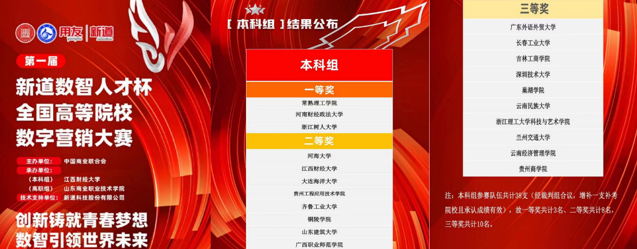 学院网讯(通讯员 赵晨菲)11月19日,2022年“新道数智人才杯”全国高等院校数字营销大赛(营销大数据赛项)经过全国38所高校学子的激烈角逐,圆满落下帷幕。由工商管理系王亚君、王明昊、王迪老师指导的永利官方网站代表队在大赛中获得了全国三等奖的好成绩。