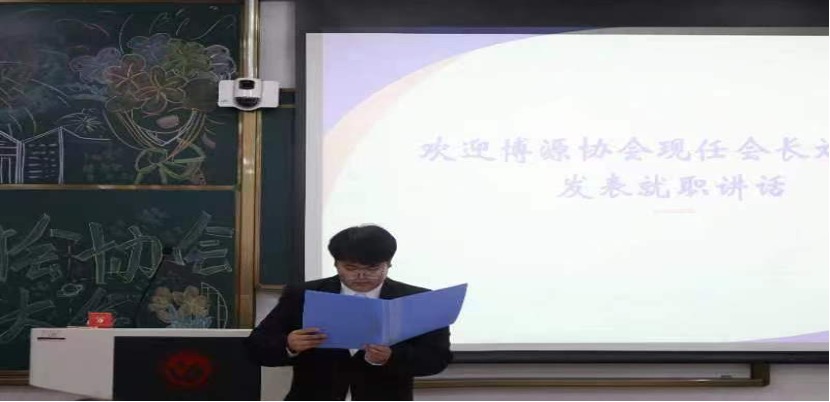 在会上,现任会长刘森源同学发表就职演讲,言辞真挚,表示接任会长于他而言是新的征程,新的开始,他会将新岗位作为起点并严格要求自己,以身作则,起到模范带头作用,及时完成工作,积极配合同学,共同建设博源财会协会这一团结友爱的大家庭。印章交接仪式上,由前任会长孙莹同学将会长这一光荣且艰巨的职责交给现任会长刘森源同学。交接仪式顺利完成,标志着换届仪式的成功。随后李佳蔚老师表达了对财会协会能够在未来各个比赛中发光发热的信心,表示将会与协会中的同学们齐心协力,为协会与学校增光添彩,共同成为更优秀的自己,为换届大会锦上添花。