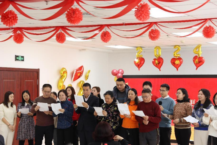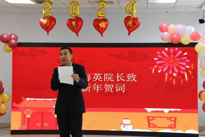 刘海英院长致以新年贺词。刘海英表示,在过去的一年里,学院全体教职工同心同德,披荆斩棘,凯歌前进。在上级部门的正确领导下,矢志不渝抓改革,凝心聚力谋发展。他祝愿大家在新的一年里身体健康、阖家幸福,在未来的征程中,同全体教职工一道,书写学院高质量发展的新篇章。