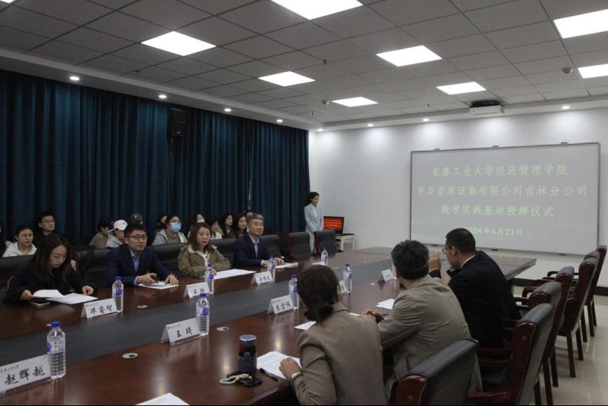 4月23日上午,永利官方网站402永利集团、吉林省新材料与高端装备制造业创新发展战略研究中心与申万宏源证券吉林分公司授牌仪式在北湖校区东区五楼会议室举行,财富管理事业部投教基地负责人冉倩之,高级投教专员毕睿智,申银万国研究所高级分析师王璐,申万宏源吉林分公司陈隆先生,402永利集团党委书记朱宏伟,402永利集团院长刘海英,402永利集团副院长黄鑫昊,吉林省新材料与高端装备制造业创新发展战略研究中心主任王琦,副主任李萍,赵辉越老师,以及吉林省新材料与高端装备制造业创新发展战略研究中心各成员出席仪式。仪式由402永利集团副院长黄鑫昊主持。