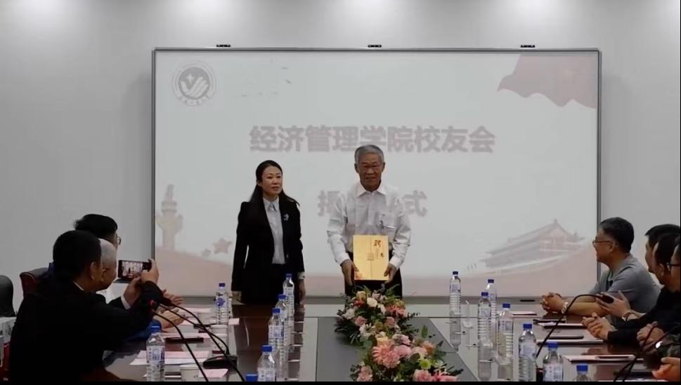 李东玲为学院校友会名誉会长杨长生颁发聘书 摄影:刘润泽