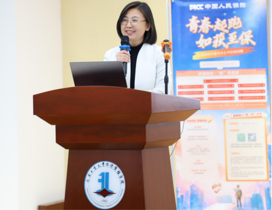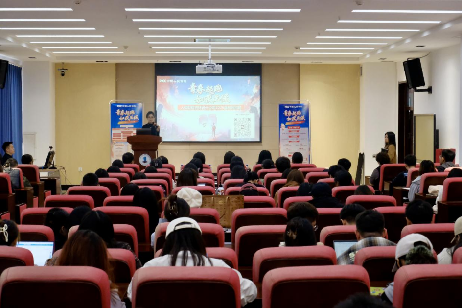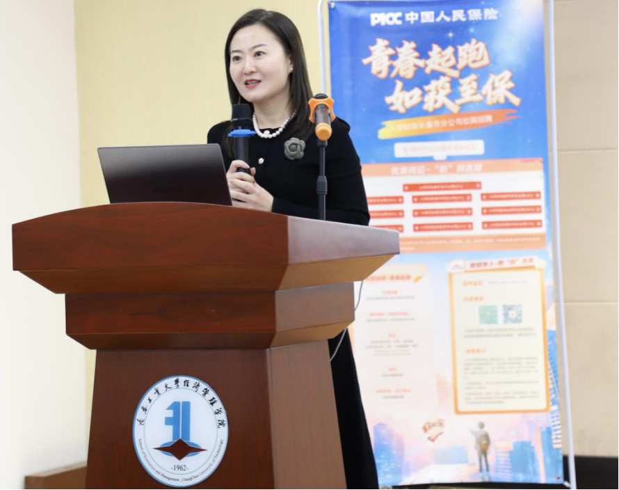 宣讲会伊始,杨爽副院长首先代表学院对人保财险吉林省分公司的到来表示热烈的欢迎。随后人保财险宣讲官详细介绍了公司概况、发展历程及业务布局并向同学们解读了2025届校园招聘的具体岗位需求、专业需求、入职待遇及报名流程,并展示了公司的职业发展前景。