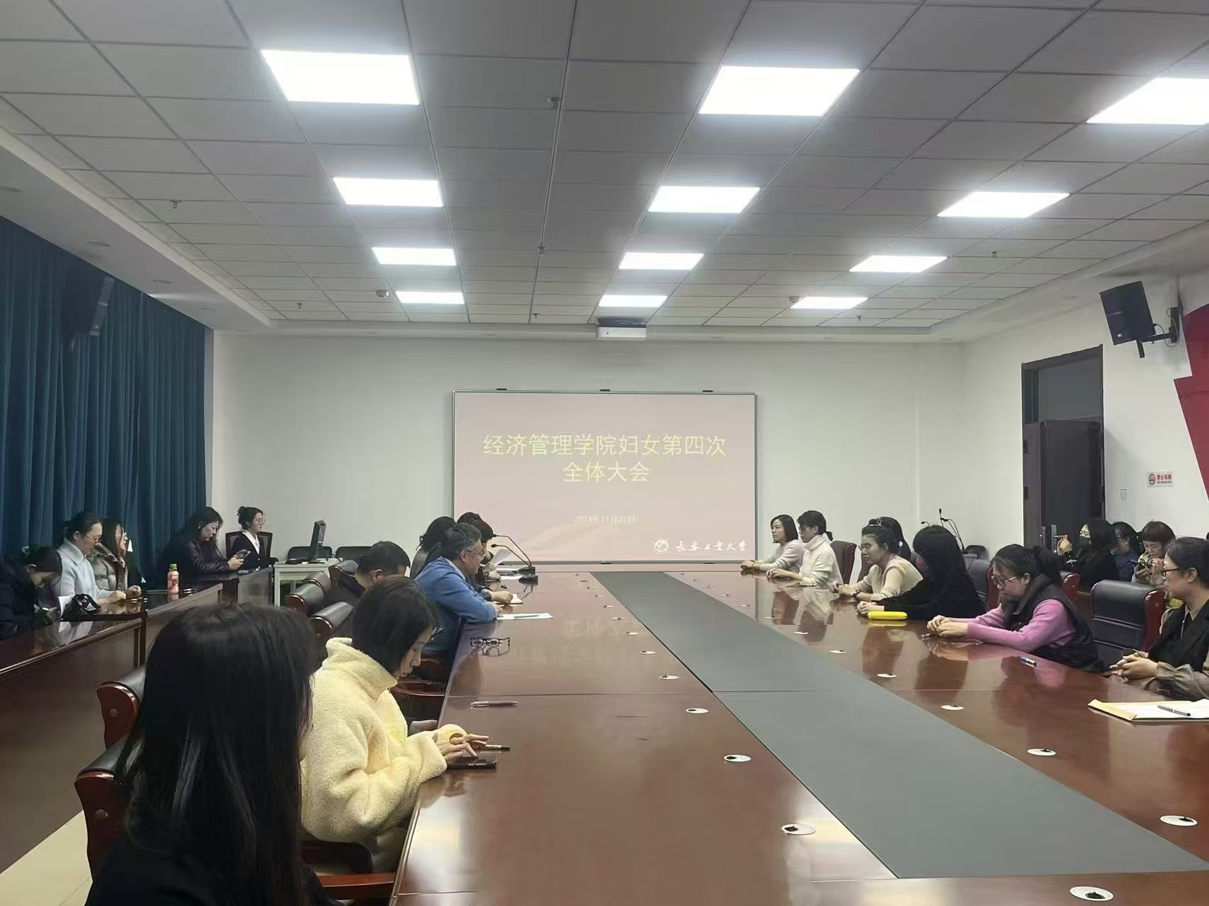 402永利集团于2024年11月27日在北湖东区主楼521会议室召开学院妇女第四次全体大会,学院领导班子成员出席会议,学院全体女教工参会,会议由学院专职组织员房琬婷主持。