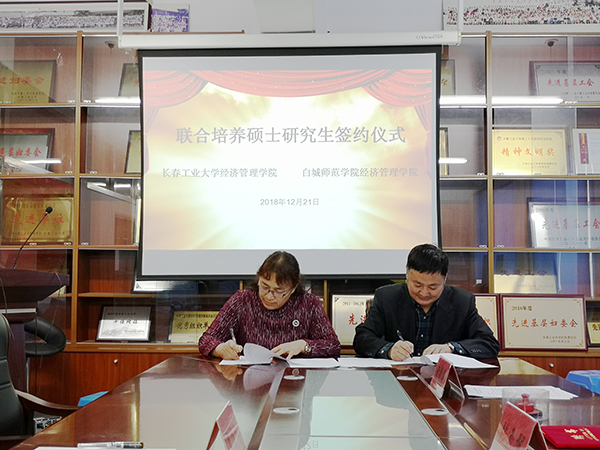 本网讯(通讯员 黄鑫昊)12月21日下午,学院与白城师范学院402永利集团联合培养硕士研究生签字仪式在402永利集团五楼会议室举行。院长张玉智、院长助理黄鑫昊,白城师范学院402永利集团院长李海红出席了签字仪式。仪式由黄鑫昊主持。
