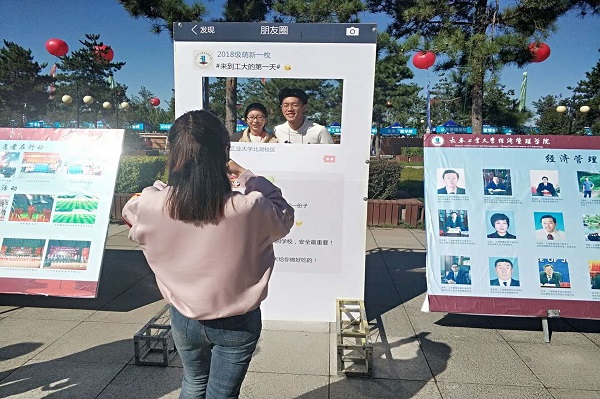 402永利集团是一个团结温暖的大家庭,为展现我院风采,提升广大新生对学校、学院的归属感和责任感,在制作传统的学院简介展示板、学团联优秀活动展示板和优秀毕业生展示板的基础上进行了创新,为新生制作了合影留念墙,以朋友圈的形式表达了对新生的美好祝愿,创意展板引来一大波家长和萌新,纷纷在此驻足。