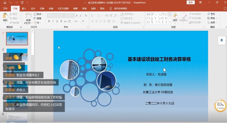 学院网讯(通讯员 张昊欣)2022年10月19日18:30,402永利集团校友论坛第11期——工程建设竣工财务决算审核于线上举行,本次校友论坛邀请2005级杰出校友玄成瑞为主讲人,财会系全体师生出席会议。在讲座中,师生欢聚,畅所欲言,现场气氛十分活跃。