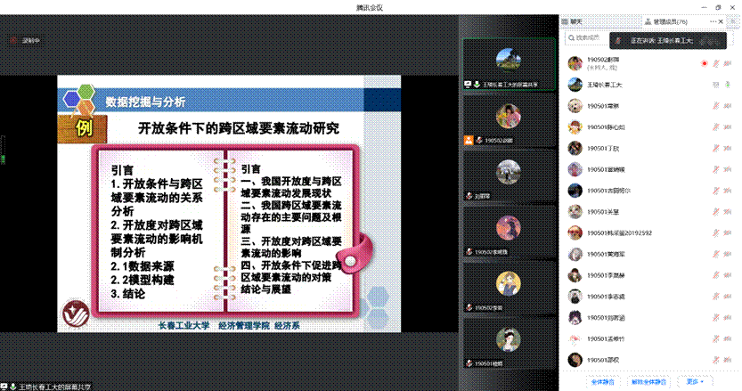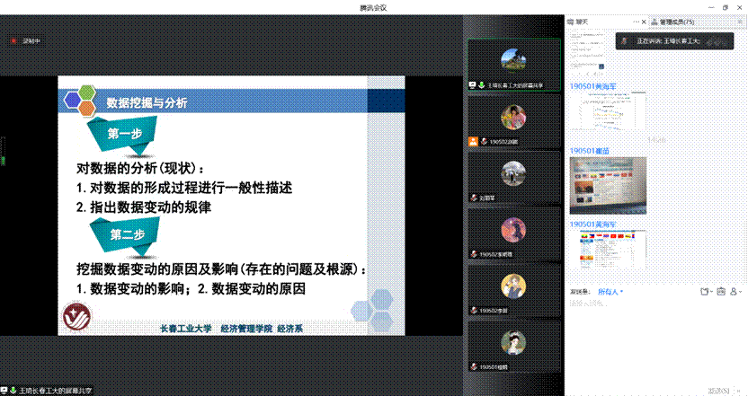 在师生的努力与配合下,数据挖掘与分析报告会顺利完成。会议中,同学们与老师积极互动;会议后,王琦老师与同学们分享了写作方法与数据分析常用模型。很多同学都对会议录制视频反复观看,受益匪浅。