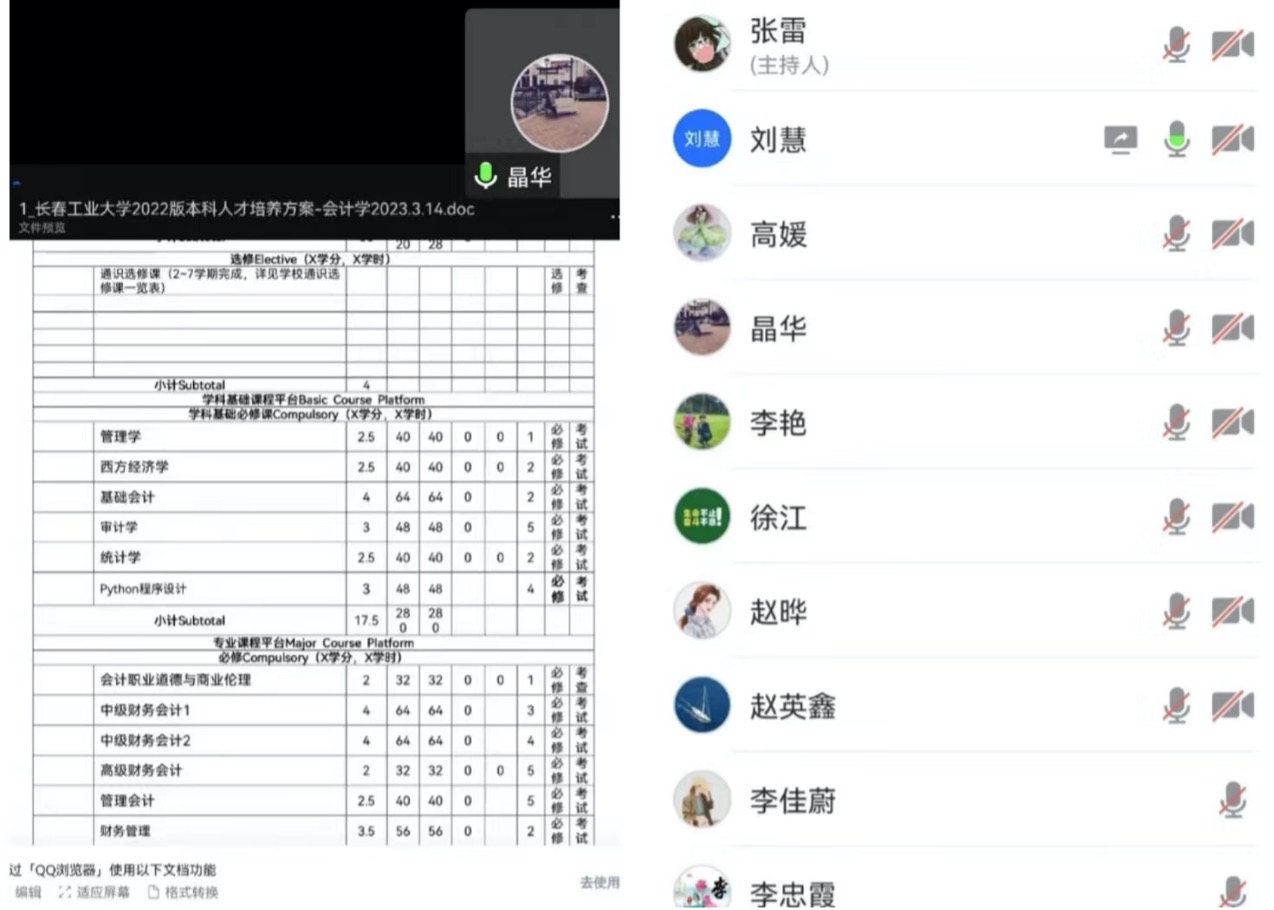 学院网讯(通讯员孙家乐)2023年3月18日,财会系新版培养方案研讨会通过腾讯会议准时召开。全体财会系老师出席本次会议。研讨会旨在明晰财会系新版培养方案方向与目标,了解财会系新版培养方案的障碍与问题,丰富和完善财会系新版培养方案,提高教学质量,促进财会系的教学发展。