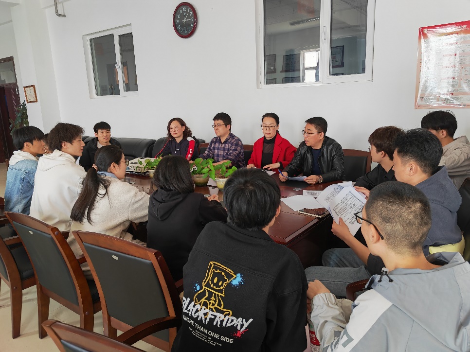 中午12时40分,与会老师与信息管理与信息系统、电子商务两个专业的学生代表就人才培养方案修订召开了交流会。刘泰然、董睿老师分别简述了两个专业的发展方向,与会同学就人才培养方案中的教学目标、课程体系等内容与老师进行了交流。
