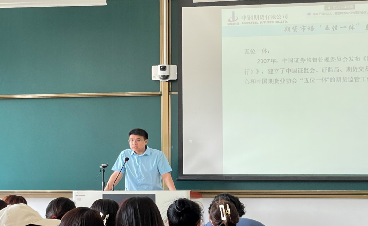 学院网讯(通讯员:高雨聪)6月14日上午,学院邀请中钢期货有限公司来校举办“期货知识进校园”暨第六届“郑商所杯”全国大学生金融模拟交易大赛讲座——走进永利官方网站第一讲。活动通过线上线下两种方式同时开展,经济系170名学生参加本次讲座。经济系主任张璇老师担任本次活动主持人,中钢期货有限公司北京营业部总经理高雪峰和中钢期货研究发展总部负责人王奕琳出席本次讲座。